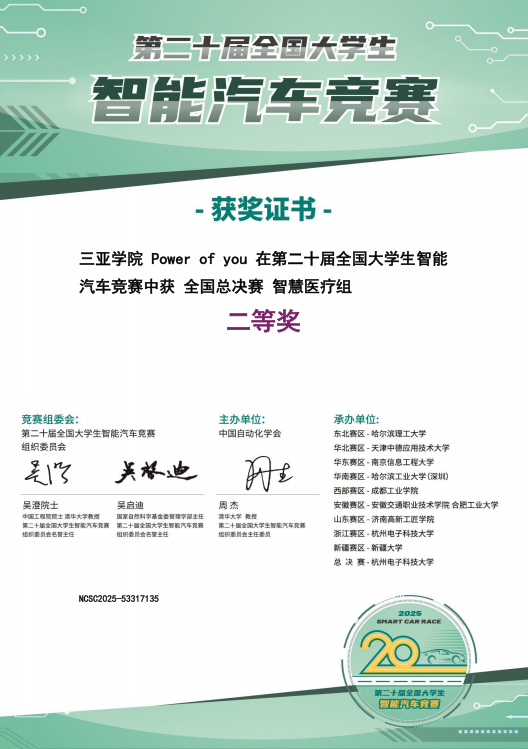 此次获奖不仅是对参赛学生技术能力和团队协作精神的肯定,更是学院深化实践教学、推动学科交叉融合的成果体现。未来,学院将继续以高水平赛事为抓手,激发学生创新潜能,服务国家新能源汽车与智能网联汽车产业发展战略,为海南自由贸易港建设培养更多高素质应用型人才。