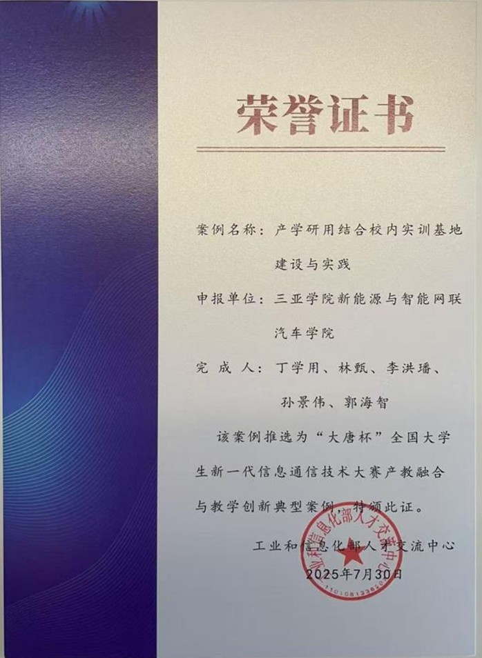 我院推进“引企入教”“推教入企”和“企教共聘”产教融合协同模式,校企共建师资队伍。深入了解企业生产一线的基本情况、产业发展的前沿动态以及科技创新的最新成果,熟悉相关专业技术岗位群对应用型人才培养的基本要求,更新专业课程的知识图谱,以产品思维为导向做好专业建设调研工作,提高自身职业实践能力,并将实践成果转化为数字化、可视化的课程、教材等教学资源。为进一步推动我校专业学位教学案例开发与案例教学实践工作,提高专业学位研究生培养质量,我院硕士生导师丁学用教授牵头申报的“5G远程遥控驾驶系统及平台搭建”教学案例在全省第三届专业学位研究生优秀教学案例评选中被评为三等奖;王良成高级实验师牵头申报的“产教融合导向的新能源汽车驱动电机仿真建模与测试”教学案例在全省第四届专业学位研究生优秀教学案例评选中被评为三等奖。我院与广东粤嵌通信科技股份有限公司合作的“产学研用结合校内实训基地建设与实践”产教融合案例成功推选为2025年“大唐杯”全国大学生新一代信息通信技术大赛产教融合与教学创新典型案例。